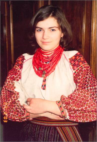 Дівчина у сорочці з вишитими рукавами - "рукави помальовані". с. Вербовець Косівського р-ну Івано-Франківської обл. З фондів Коломийського музею народного мистецтва Покуття та Гуцульщини. Фото І. Свйонтек